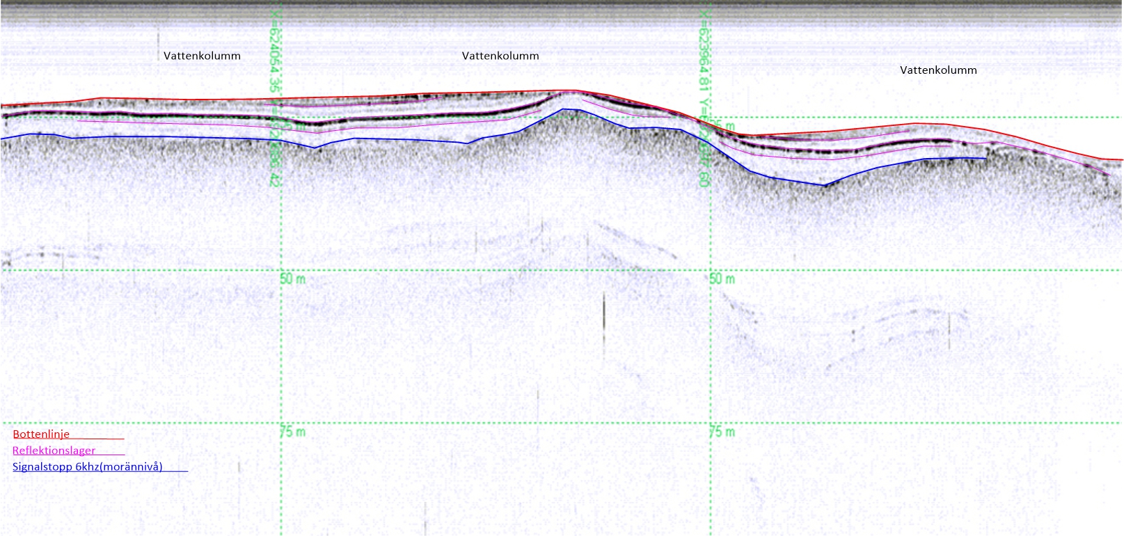 Vi utför jordartsbedömningar med så kallade sub-bottom profiler (penetrerande ekolod)